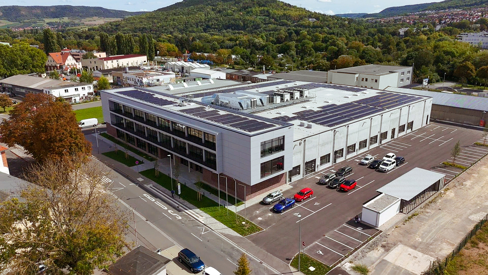 The building, owned by W.S. Gewerbebau GmbH, which specializes in commercial real estate, is leased to Hillos on a long-term basis. At Hillos, a specialized team precisely assembles, tests and calibrates the most sophisticated measuring technology devices in the Hilti portfolio. At the heart of the facility are the dust-free, temperature- and humidity-controlled clean room for device assembly, and the 60-meter-long testing field, which are essential for manufacturing the high-precision total stations and laser scanners that Hilti produces in Jena. These digital solutions are the link for transferring digital plans to the construction site, capturing the current progress at the jobsite and integrating the as-is state back into the planning process. The new building, which has a total of 6,500 m² of floor space, also houses offices, logistics areas and various recreation and meeting areas, such as a cafeteria.